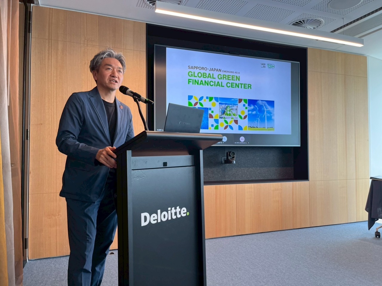 国内外の主要な金融系企業や事業会社、行政機関の幹部等が一堂に会し、様々な講演やセッションを通じ気候変動対策への資本投入に関する議論が交わされる中で、個別面談やブース訪問等を行い、GXポテンシャルを活用した国際金融都市としての取組を進める札幌への投資や進出を呼びかけました。
