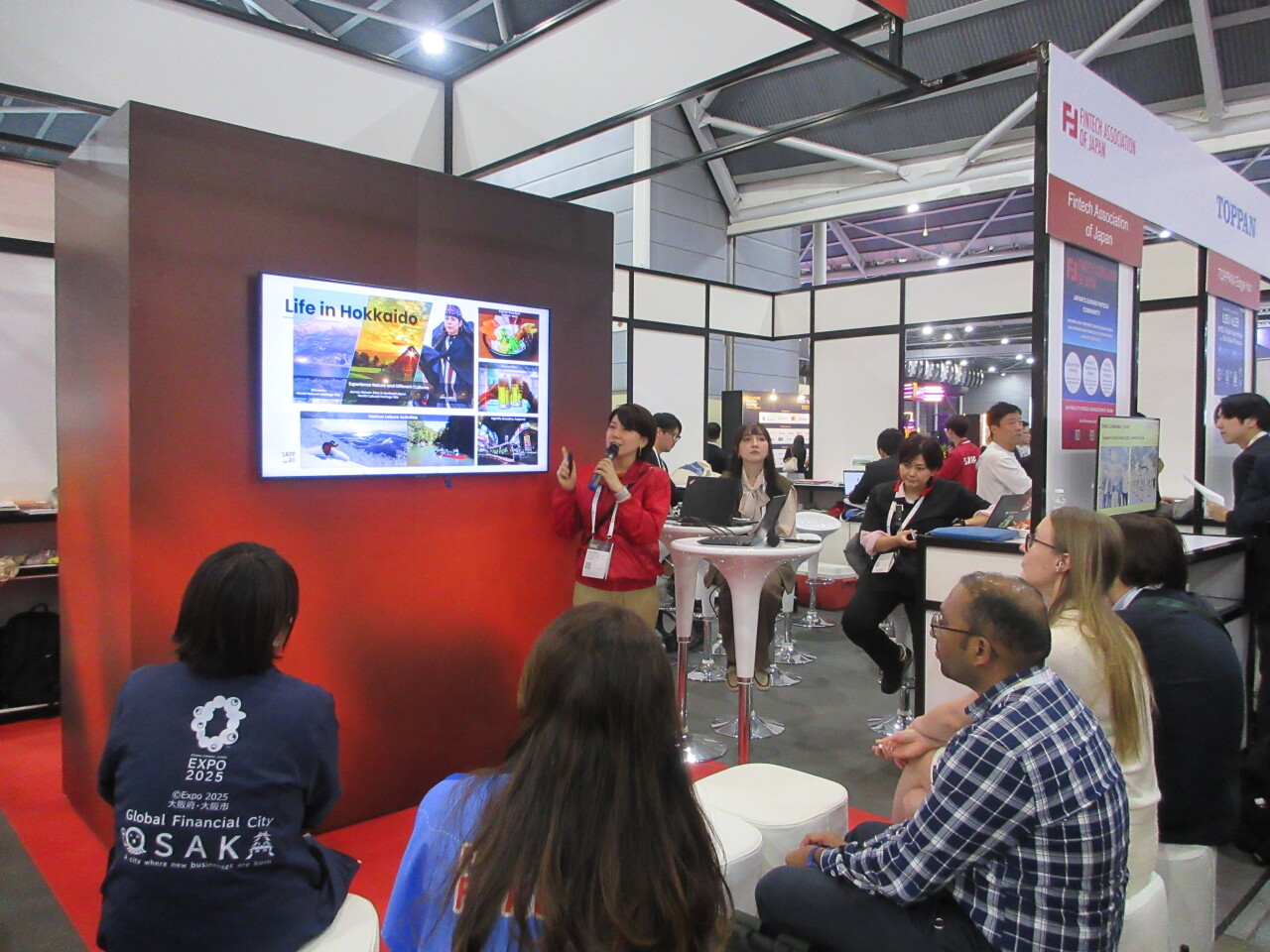 このイベントは、世界約150カ国、66,000人以上のフィンテック及び金融関係者が参加するもので、Japan Pavilionにて東京、大阪、福岡などと共に出展しました。